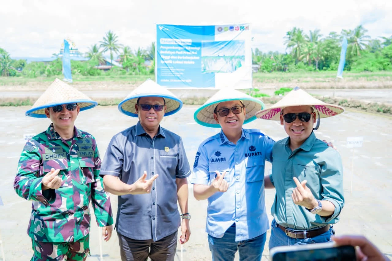 Liputan4.id — Kolaka, 23 November 2025 – Di tengah upaya bangsa memperkuat ketahanan pangan nasional sesuai Asta Cita Presiden, Kabupaten Kolaka menjadi panggung kolaborasi penting yang menyatukan pemerintah pusat, pemerintah daerah, dan dunia usaha. Hari ini, melalui penanaman perdana demplot padi berkelanjutan di Desa Puubunga (Baula), Desa Lemedai (Tanggetada), dan Desa Pubenua (Baula), lahir sebuah inisiatif yang bukan hanya menanam benih padi—tetapi menanam harapan, pengetahuan, dan masa depan kemandirian pangan Kolaka.