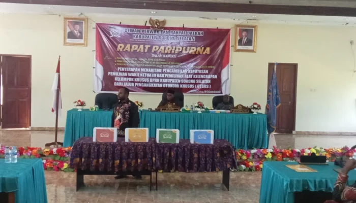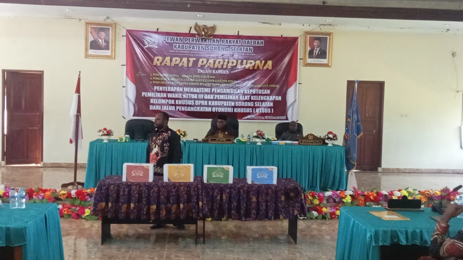 Dewan Perwakilan Rakyat Daerah (DPRD) Kabupaten Sorong Selatan menggelar Rapat Paripurna dalam rangka pleno penetapan agenda penting kelembagaan tahun 2026, bertempat di ruang sidang DPRD Kabupaten Sorong Selatan, Jumat (13/02/2026).