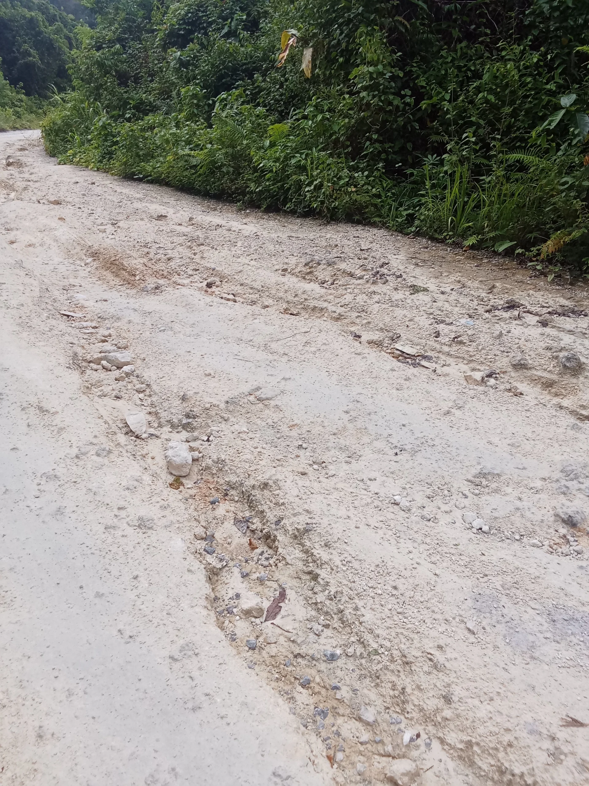 Beberapa ruas jalan dilaporkan berlubang, berbatu, dan sulit dilalui terutama saat musim hujan. Kondisi ini membuat perjalanan masyarakat menjadi lebih lama serta berisiko bagi pengendara yang melintas.