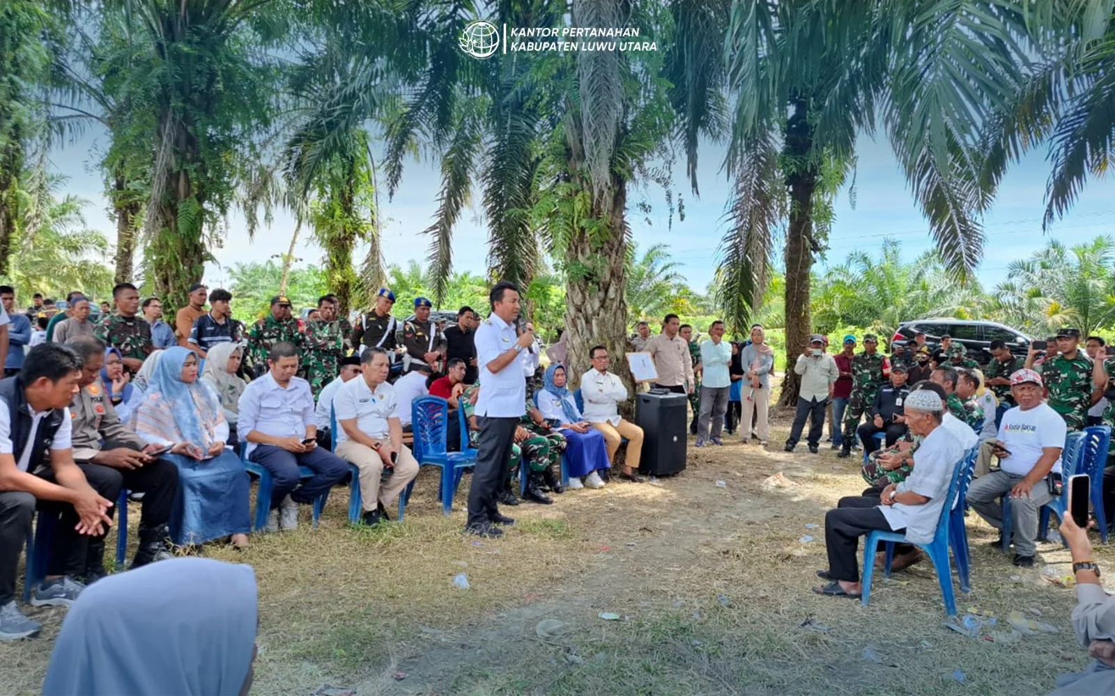 Dalam kegiatan tersebut, Kantor Pertanahan Kabupaten Luwu Utara diwakili oleh Bapak Suharianto, yang turut hadir bersama jajaran perwakilan instansi terkait lainnya. Audiensi juga dihadiri oleh Bupati Luwu Utara Bapak Andi Abdullah Rahim, unsur Forum Koordinasi Pimpinan Daerah (Forkopimda), serta pejabat dari Kodam XIV/Hasanuddin dan Kodim 1403/Palopo.