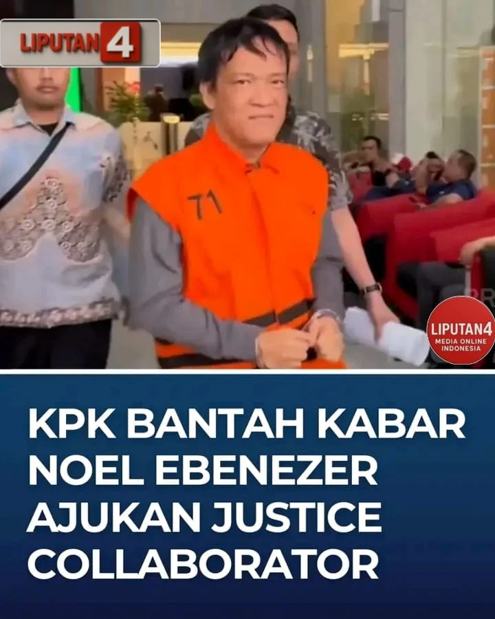 Jakarta,~Liputan4.id. Beredar kabar yang menyebut eks Wamenaker Immanuel Ebenezer alias Noe7l mengajukan diri sebagai justice collaborator (JC) dalam kasus dugaan pemerasan dalam sertifikasi keselamatan dan kesehatan kerja (K3). Komisi Pemberantasan Korupsi (KPK) membantah kabar itu.