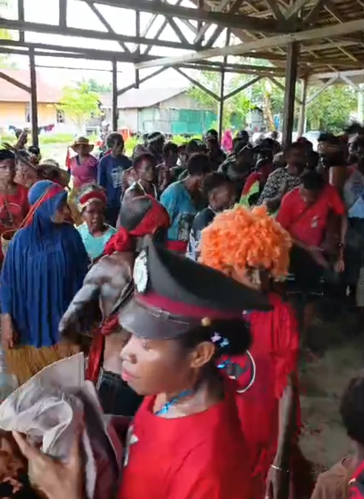 Penyambutan berlangsung khidmat dan meriah dengan tarian adat Tifa Gong yang dibawakan oleh masyarakat Kampung Tarof dan sekitarnya.