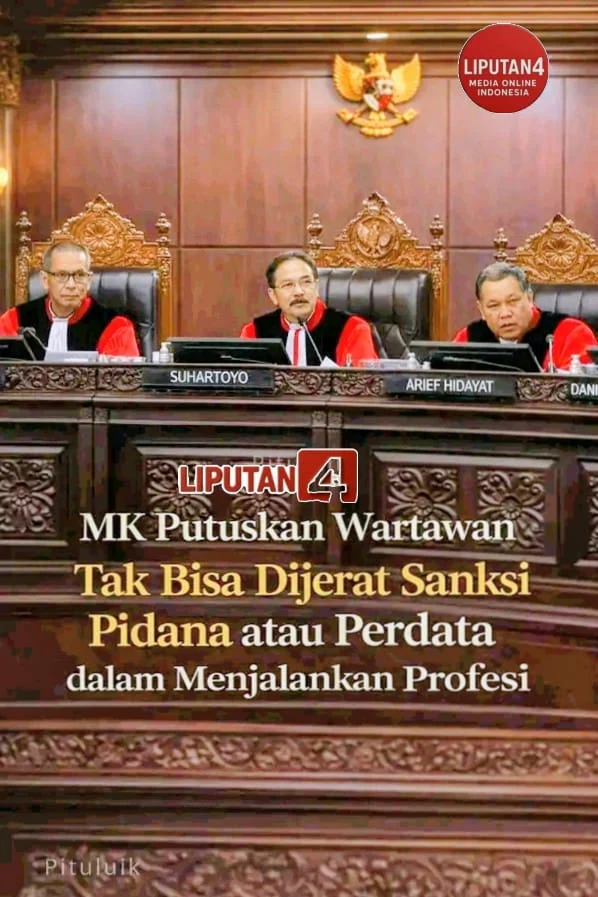 MK (Mahkamah Konstitusi) Hakim Konstitusi Guntur Hamzah Putuskan Wartawan Tak Bisa Dijerat Sanksi Pidana atau Perdata dalam Menjalankan Profesi Hukum Yang Sering Kali Mengintimidasi Jurnalistik.