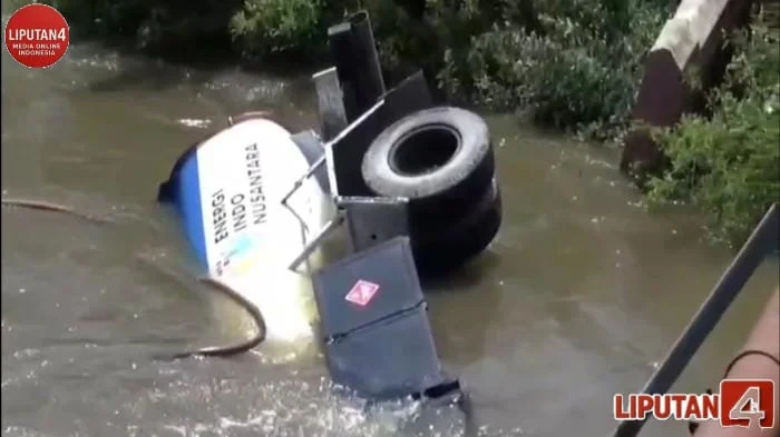 “Sopir dan penumpangnya mengalami luka-luka. Mobil tangkinya berisi BBM solar, sekitar setengah tangki, tapi isinya tidak sampai tumpah ke sungai,” ungkapnya.