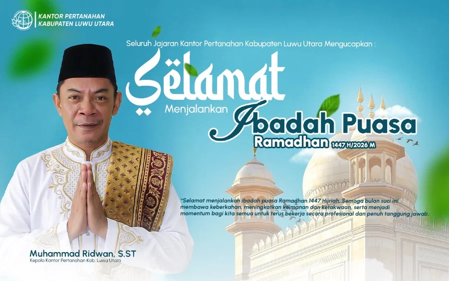 Melalui momentum Ramadan 1447 H/2026 M, Kantor Pertanahan Kabupaten Luwu Utara berkomitmen untuk terus menghadirkan pelayanan pertanahan yang profesional, modern, dan berintegritas, sejalan dengan nilai-nilai dasar Kementerian ATR/BPN.