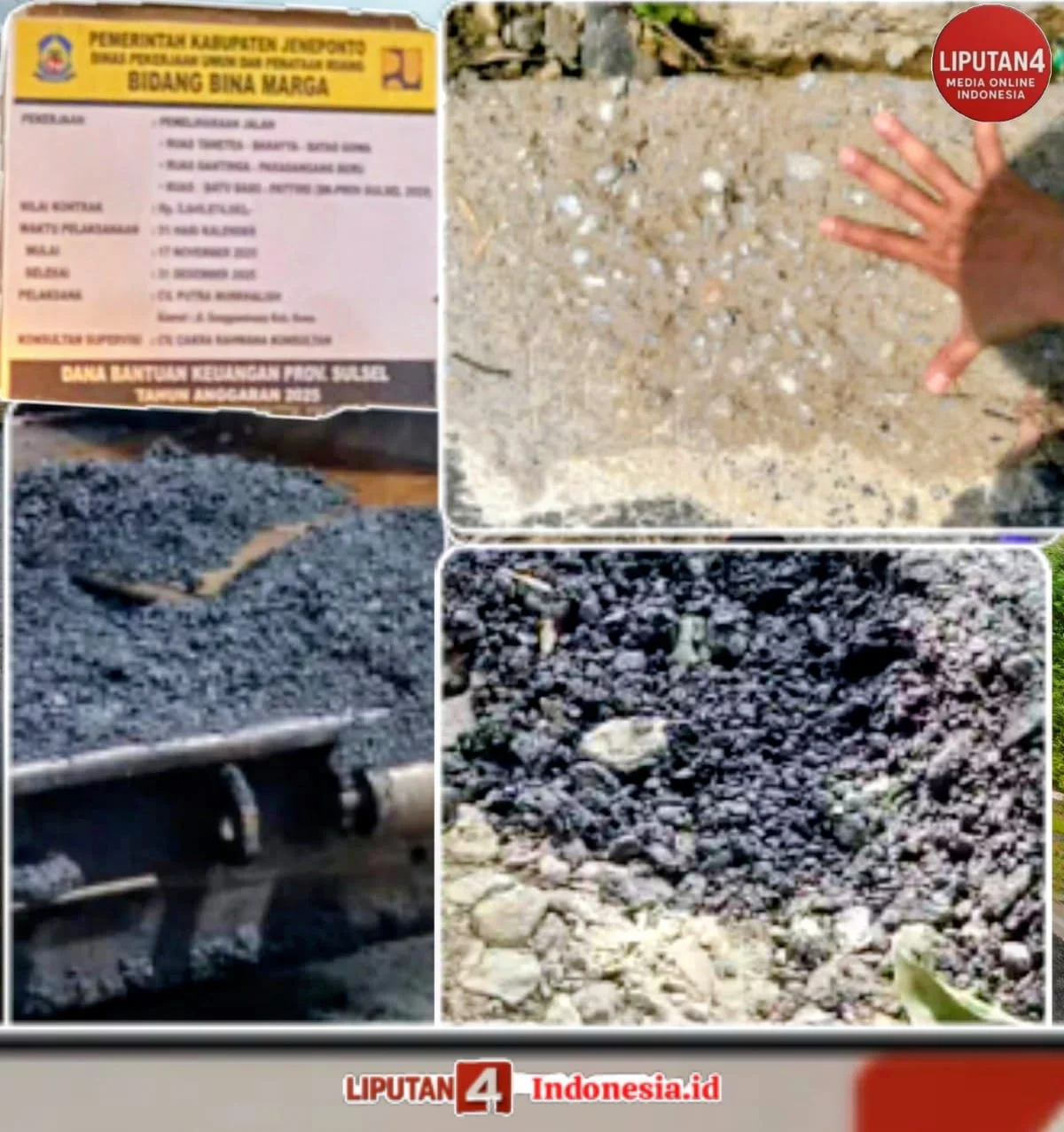 Kerusakan parah pada jalan yang baru dibangun merupakan tanda bahwa pekerjaan tidak memenuhi standar kualitas sehingga perbaikan