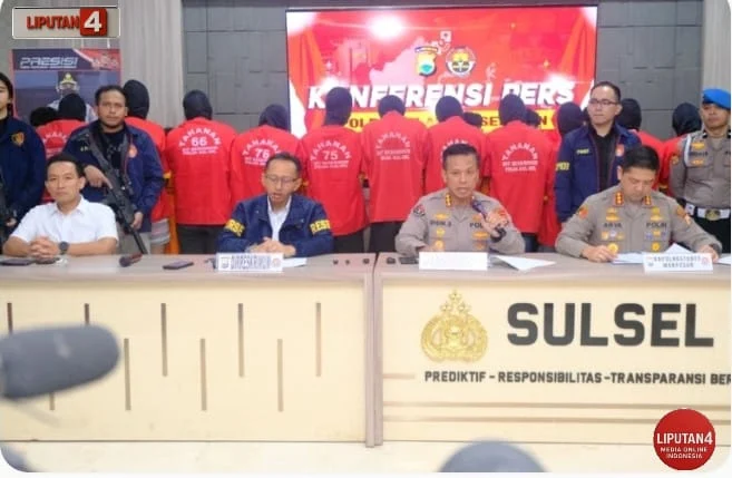 Hal tersebut disampaikan dalam Konferensi Pers Polda Sulsel yang digelar di Lobi Mapolda Sulsel, Kamis (04/09/2025). Konferensi pers dipimpin oleh Dirreskrimum Polda Sulsel Kombes Pol Setiadi Sulaksono, S.I.K., M.H., bersama Kabid Humas Polda Sulsel Kombes Pol Didik Supranoto, S.I.K., M.H., serta Kapolrestabes Makassar Kombes Pol Dr. Arya Perdana, S.H., S.I.K., M.Si.