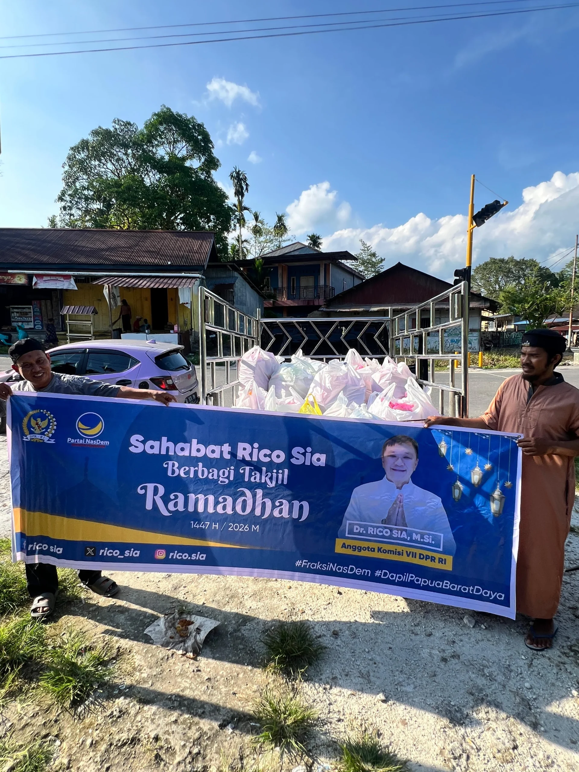 Pembagian takjil di wilayah Sorong Selatan ini melibatkan Sahabat Rico Sia, jajaran DPD dan Anggota DPRD Partai Partai NasDem Sorong Selatan, serta tenaga ahli dan staf ahli beliau.
